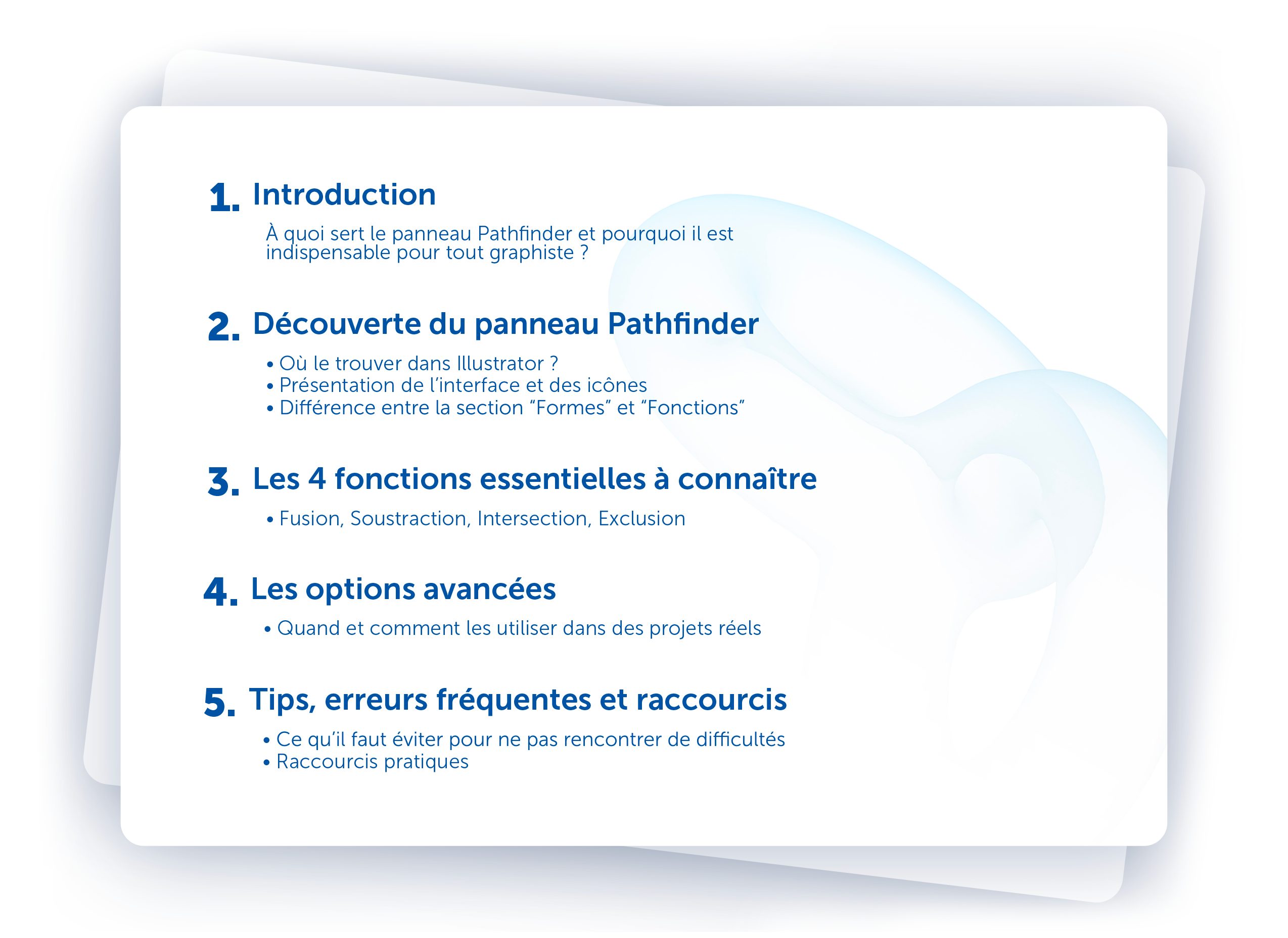 En achetant cet e-book, vous recevez un guide essentiel pour apprendre à utiliser le panneau Pathfinder d’Illustrator, comprendre ses différences de fonctions, éviter les erreurs fréquentes, et appliquer les bonnes méthodes dans vos projets visuels.