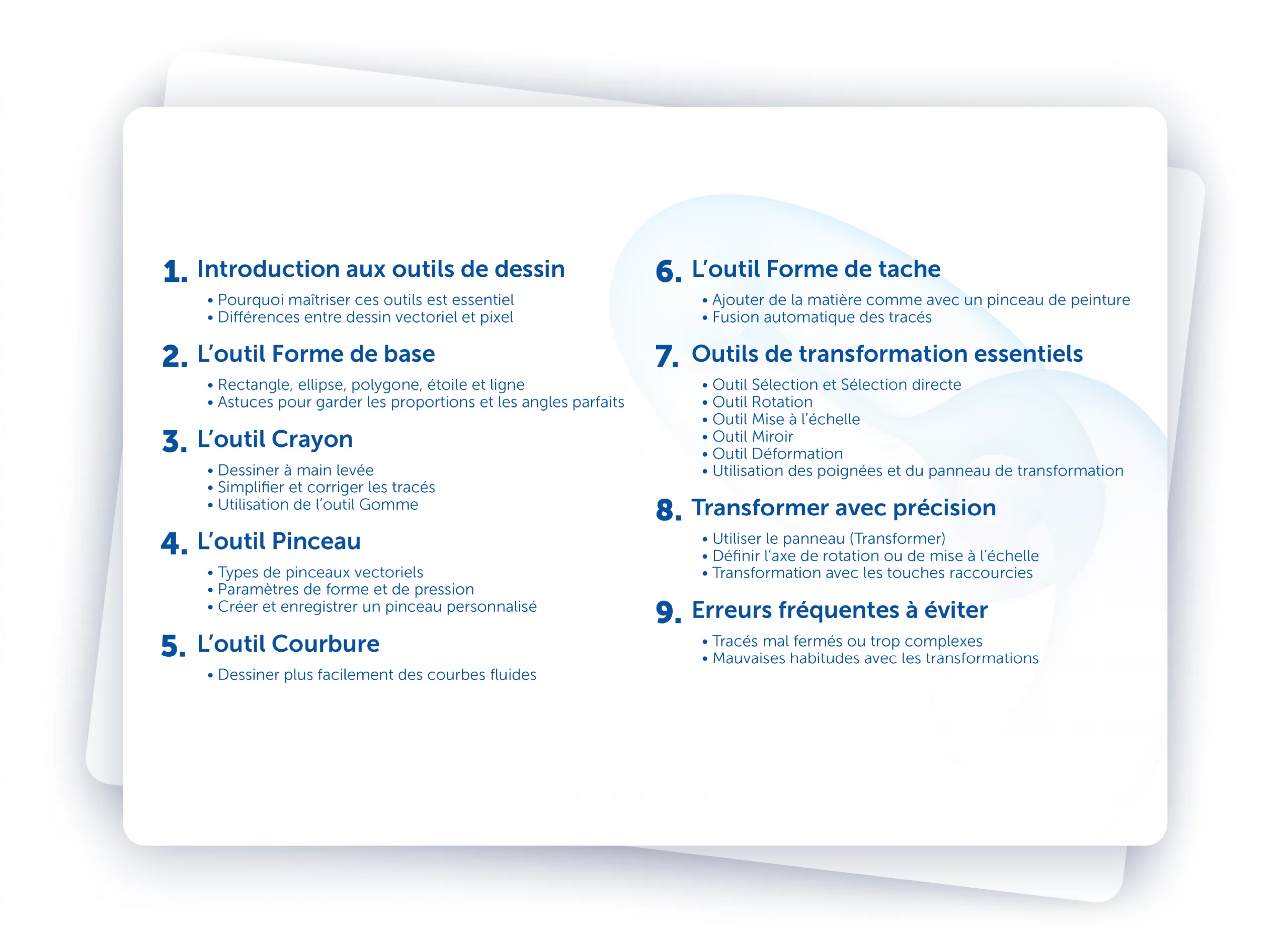 • Une méthode structurée pour développer vos bases en dessin vectoriel